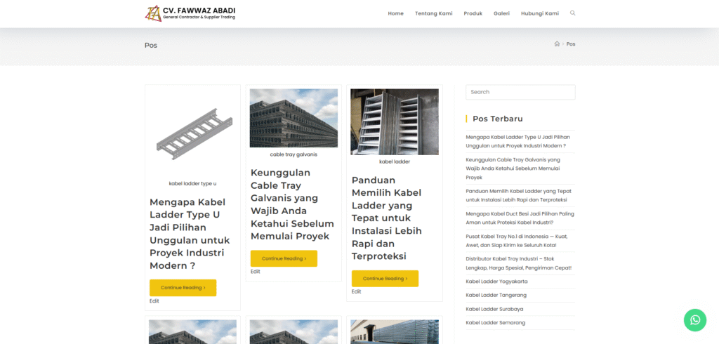 Pesoros dipercaya untuk membangun website resmi CV Fawwaz Abadi, sebuah perusahaan yang berfokus pada solusi sistem kabel pendukung, termasuk kabel tray, kabel ladder, dan berbagai aksesoris instalasi industri. Website dikembangkan untuk menghadirkan tampilan profesional, struktur informasi yang jelas, dan kemudahan navigasi bagi calon klien yang mencari produk berkualitas tinggi.